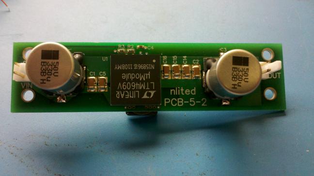 This board was designed to fit into the tight confines of an oilfield instrument to provide up to 6 amps of 15V rail power from a bank of 28V batteries. Voltage is easily set from 1.2V to 26V with just one resistor.
