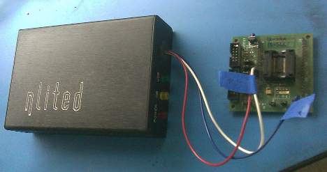 Optional hardware probe for use with DbgOut on small embedded systems, shown here connected to an MSP430 target.